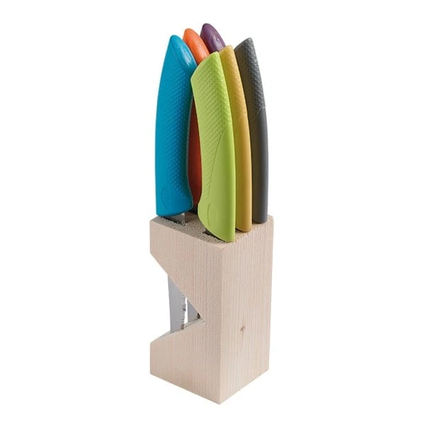 Les 6 couteaux à steak Golf avec leur bloc en bois Pradel sont parfait pour déguster des plats au quotidien. Ils sont conçus avec une lame en inox micro-dentée pour une découpe optimale de vos aliments. Les manches sont en polypropylène, dans de jolies couleurs trendy mix qui égayeront vos tables !
