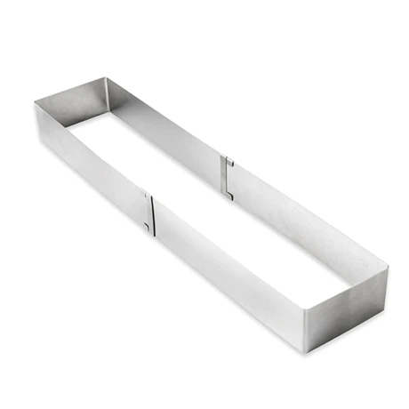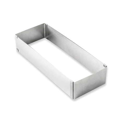Son format allongé est idéal pour la confection de bûches mais il peut vous permettre de réaliser tous types de gâteaux. Sa largeur est fixe de 10 cm et sa hauteur de 5 cm, vous pouvez ensuite vous amusez avec sa longueur en adaptant au nombre de convives ou à votre quantité de pâte. Le minimum étant 25,5 cm et le maximum 48,5 cm.