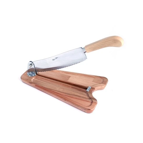 Robuste, ce coupe-pain en hêtre huilé de Roger Orfèvre vous permettra de couper facilement vos miches de pain en toute sécurité. Le socle est en hêtre huilé, bois de qualité, et la lame crantée est en acier inoxydable, d’une grande résistance et durabilité.