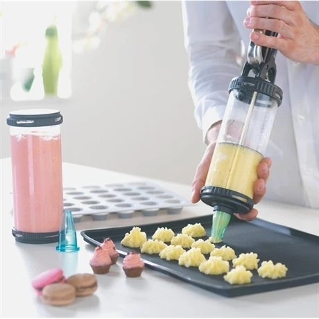 Le récipient avec 2 bouchons pour Le Tube De Buyer est une recharge graduée pour le piston à pression professionnel Le Tube De Buyer (réf 56061). Livrée avec 2 couvercles hermétiques. Conserve la préparation au réfrigérateur. Contenance 0,75 L.