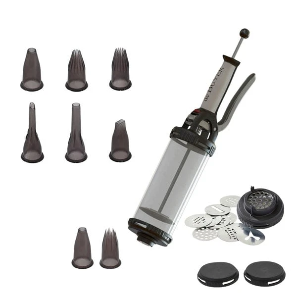 Rigide et avec une belle contenance de 0,75 L, le tube à pression est plus pratique à utiliser qu’une poche à douille. Démontable et équipable de nombreux embouts interchangeables, ce tube remplit, garnit ou décore vos réalisations sucrées ou salées. La quantité expulsée se dose par une pression sur le piston et se régule ainsi facilement sans effort.