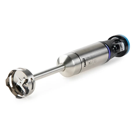 Conçu en inox haut de gamme, le mixeur s’éclaire en bleu pendant son utilisation et le bouton Ergo Press vous permet de contrôler la vitesse en fonction de l’intensité de pression effectuée avec votre doigt. Plus vous appuyez sur le bouton, plus la vitesse augmente ; le mixeur est ainsi réglable en continu et vous permet d’adapter l’intensité à la consistance souhaitée.