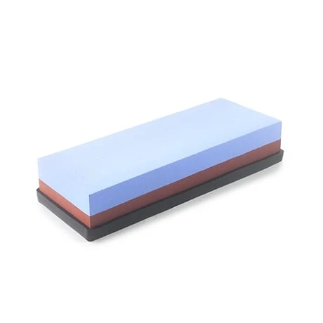 Destiné aux amateurs ainsi qu’aux chefs professionnels, la pierre à aiguiser a 2 faces : GR400 et GR1000. Le grain GR400 est épais pour aiguiser vos lames très émoussées voire entaillées. Pour un aiguisage régulier ou de finition, la face GR1000 est optimale car sa granularité est fine.