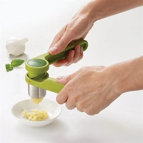 Le presse ail fait partie de la gamme Helix de Joseph Joseph, qui vous propose des pressoirs malins qui limitent les efforts. La force de pression s’effectue horizontalement, ce qui est plus confortable et requiert moins de force. Ces pressoirs contiennent des éléments en acier inoxydable et en nylon qui se déboîtent pour un nettoyage facile. Les éléments passent au lave vaisselle.