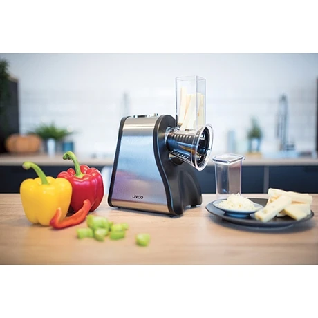 La râpe électrique multifonctions DOP192 d’une puissance de 200 W dispose de 4 cônes interchangeables pour vous permettre de râper votre fromage mais également vos légumes et herbes selon vos envies ! Ses 4 cônes que vous pourrez changer à votre guise, vous permettront de râper d’un format fin à gros, ainsi que de trancher et hacher. Très simple d’utilisation vous n’aurez qu’à placer le cône adapté à la découpe souhaitée, à disposer vos fromages ou légumes dans le tube transparent et à activer le seul bouton de fonctionnement présent sur votre râpe électrique. Votre râpe dispose également d’un poussoir qui rendra votre utilisation encore plus fluide en vous permettant de récupérer facilement vos aliments après découpe. En prime, sa goulotte large de 4,5 cm vous permettra de découper vos légumes les plus imposants ! Cette râpeuse électrique habillée d’acier inoxydable s’intégrera parfaitement dans vos cuisines et se révélera véritablement utile au quotidien.