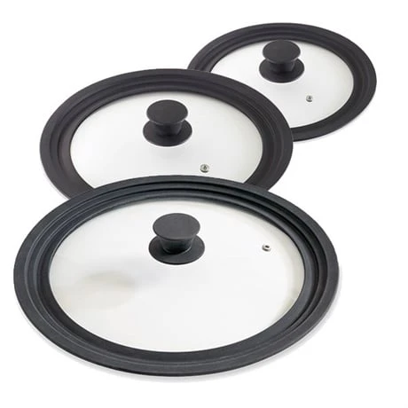 Idéal pour cuisiner au quotidien, les couvercles en verre et silicone noirs multi-diamètres s’adaptent à vos diamètres de poêles, casseroles, sauteuses ou autres récipients de 16 à 32 cm !