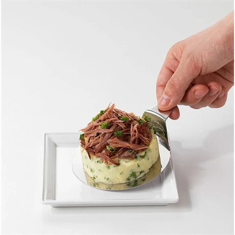 Le support pour cercle de 11 cm de diamètre est en inox 18/0 (épaisseur de 6 mm) et s’utilise pour dresser les cercles, les manipuler et les servir en gardant les présentations intactes.