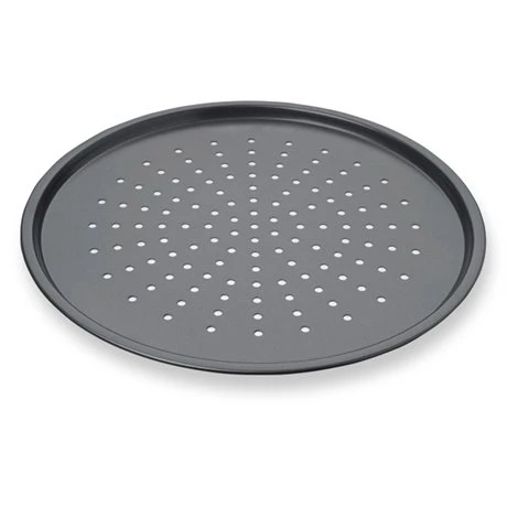 « Le Moule à pizza ou à tarte perforé 37,5 cm The Baking Experts™ permet d’obtenir des pizzas et des tartes savoureuses à la pâte parfaitement cuite. Grâce à ses perforations, la chaleur se répartit uniformément sur toute la plaque et la pâte devient croustillante et dorée. Ce moule permet de cuire toutes sorties de tartes sucrées ou salées ou de flammekueche.