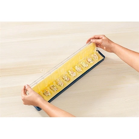 Betty Bossi met à votre disposition ce moule à rissoles Rissolvit pour fabriquer vos rissoles maison en un tour de main : étalez la pâte dans le moule, garnissez-le avec votre farce, rabattez la farce et refermez le moule. Vous pourrez faire soit 10 petites rissoles d’un coup, soit 5 grandes rissoles. Et pour vous aider à confectionner vos rissoles et ajouter une touche de créativité dans vos farces, un livret de recettes est également fourni avec le Rissol’vit MiniMax Betty bossi.