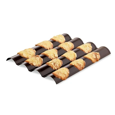 La plaque à tuiles antiadhésive de la gamme Mathon Spécialités en acier vous permet de confectionner très simplement des tuiles croustillantes et bien bombées. Le revêtement antiadhésif assure un démoulage et un nettoyage faciles car la pâte n’attache pas. De grandes dimensions, elle s’adapte à la taille de votre four et permet de réaliser des tuiles en grandes quantités. Son revêtement anti-adhérent de haute qualité contient de nombreuses particules de céramique pour une anti-adhérence exceptionnelle et une forte résistance aux rayures chocs et températures extrêmes.