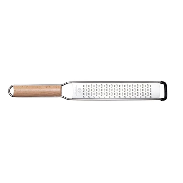 La râpe gros grains avec manche en hêtre dispose d’une lame en acier inoxydable durable et esthétique. Ultra coupante, elle vous permettra de râper de gros grains et dispose d’un embout antidérapant de manière à prendre appuie sans glisser. Robuste, son manche en fil inox avec insert en hêtre naturel verni dispose d’un design authentique tout en étant ergonomique lors de son utilisation. Idéale pour râper les légumes durs comme les carottes, le céleri mais aussi les fromages et les condiments.