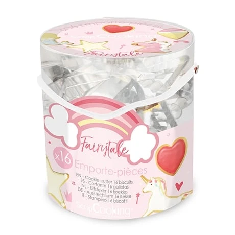 Pour un anniversaire, un goûter ou une fête dans l’univers du conte de fée, rien de tel que le seau de 16 découpoirs Fairytale Scrapcooking.