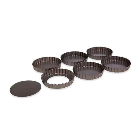 Avec ce set de 6 mini moules Mathon, réalisez de délicieuses tartelettes, quiches ou pizzas individuelles aux bords cannelés.