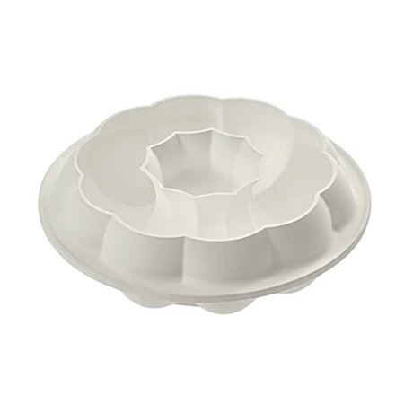 Le moule silicone Moments Silikomart est idéal pour réaliser toutes sortes de préparations, des brioches, des reines de Saba, des gâteaux cuits, des desserts froids et autres. Sa forme en fleur est originale et offre un résultat épatant. Légèrement arrondie, la bordure interne du moule garantit aux desserts une élégance remarquable. Elle est pratique pour découper les desserts de façon équilibrée, et elle offre la possibilité de couper 10 parts gourmandes. En silicone, ce moule Silikomart passe au four, au congélateur, au frigo et au micro-ondes pour pouvoir l’utiliser selon les envies. Il se lave facilement à la main ou au lave-vaisselle. Fabriqué en Italie, il résiste à des températures entre – 60° et 230°C.