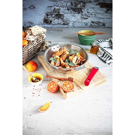 La composition en trilaminé inox/aluminium/inox des articles de la gamme Casteline Amovible garantissent un rendement thermique optimal et une répartition de la chaleur homogène sur toute la surface du fond et des parois de vos ustensiles. Le triple fond encapsulé 7 mm accumulateur des woks vous permet de garder vos plats au chaud même après la cuisson. Le revêtement antiadhésif du wok revêtue vous permet de cuisiner vos viandes et légumes sans ajout de matière grasse. Afin de faciliter leur rangement, les manches et poignées des wok sont amovibles et vendus séparément, et tous les éléments supportent le passage au lave-vaisselle.